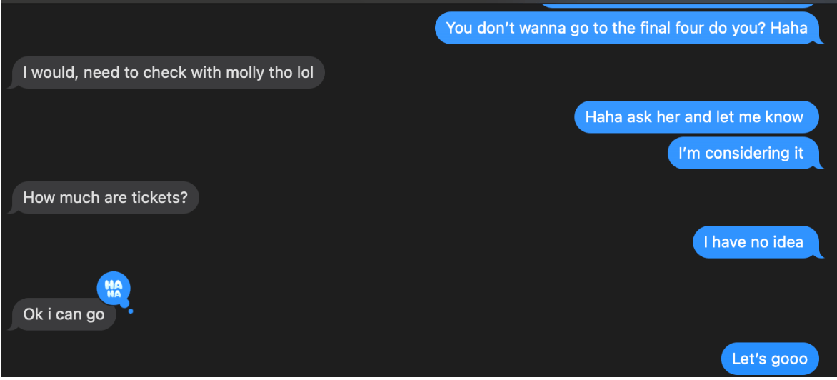 Then once we beat Tennessee and secured our spot in the Final Four, I checked in with a few group chat of buddies from Michigan.